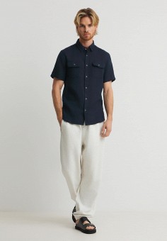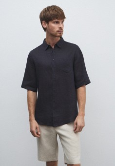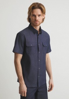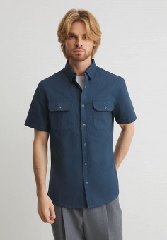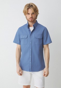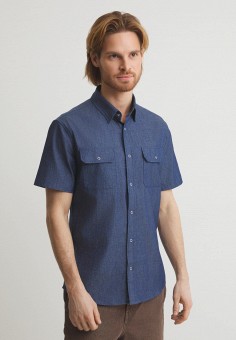 Синие мужские рубашки с коротким рукавом Maison David