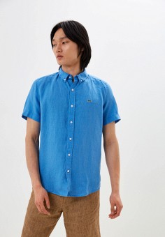 Голубые мужские рубашки с коротким рукавом Lacoste