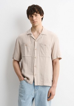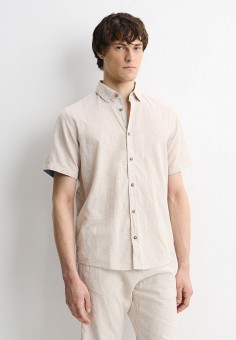 Бежевые мужские рубашки с коротким рукавом Tom Tailor