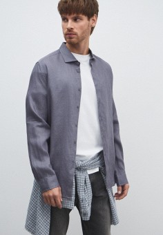 Серые мужские рубашки с длинным рукавом Maison David