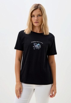 Черные женские футболки больших размеров Koton