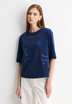 Синие женские футболки больших размеров Helmidge