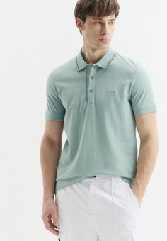 Зеленые мужские поло с коротким рукавом Boss