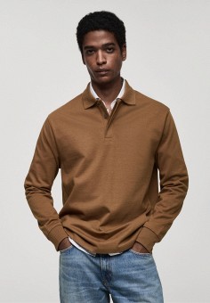 Коричневые мужские поло с длинными рукавами Mango Man